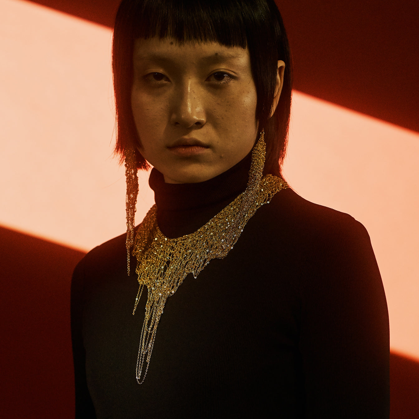 Iola Mixed Silver & Matt Grey Mesh Necklace